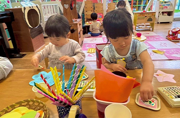 1,2歳児の子どもたちが楽しく過ごしています
